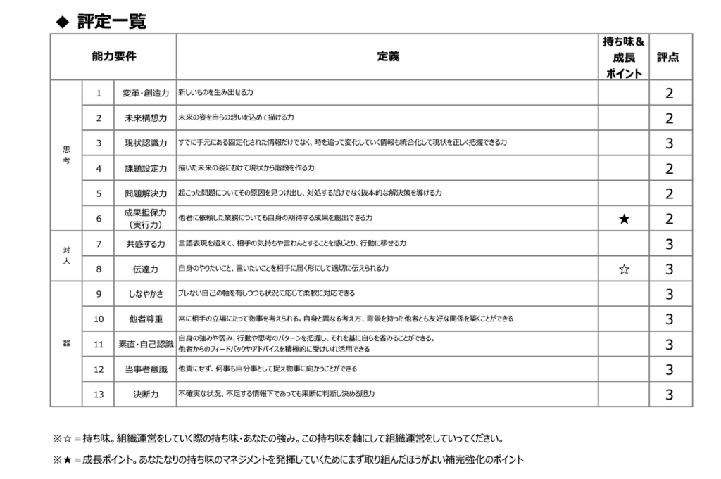 ポラリスの評点は5段階評価で、「3」は標準点、つまりマネージャーに期待される水準を満たしているということです。